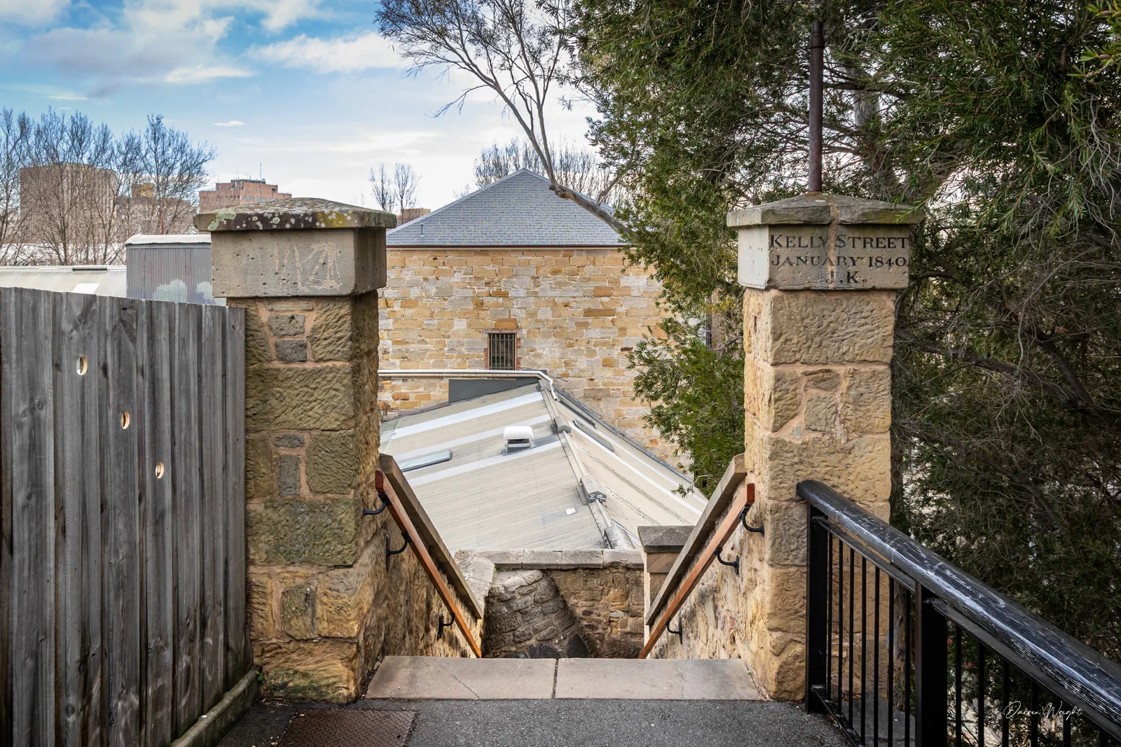 Tucked between the sandstone walls of Salamanca and the rise into Battery Point, Kelly’s Steps offer one of Hobart’s simplest but most striking architectural links. Built in 1840 by explorer and whaler James Kelly, the staircase was carved straight into the cliff to create a direct route between the growing port below and the residential streets above.