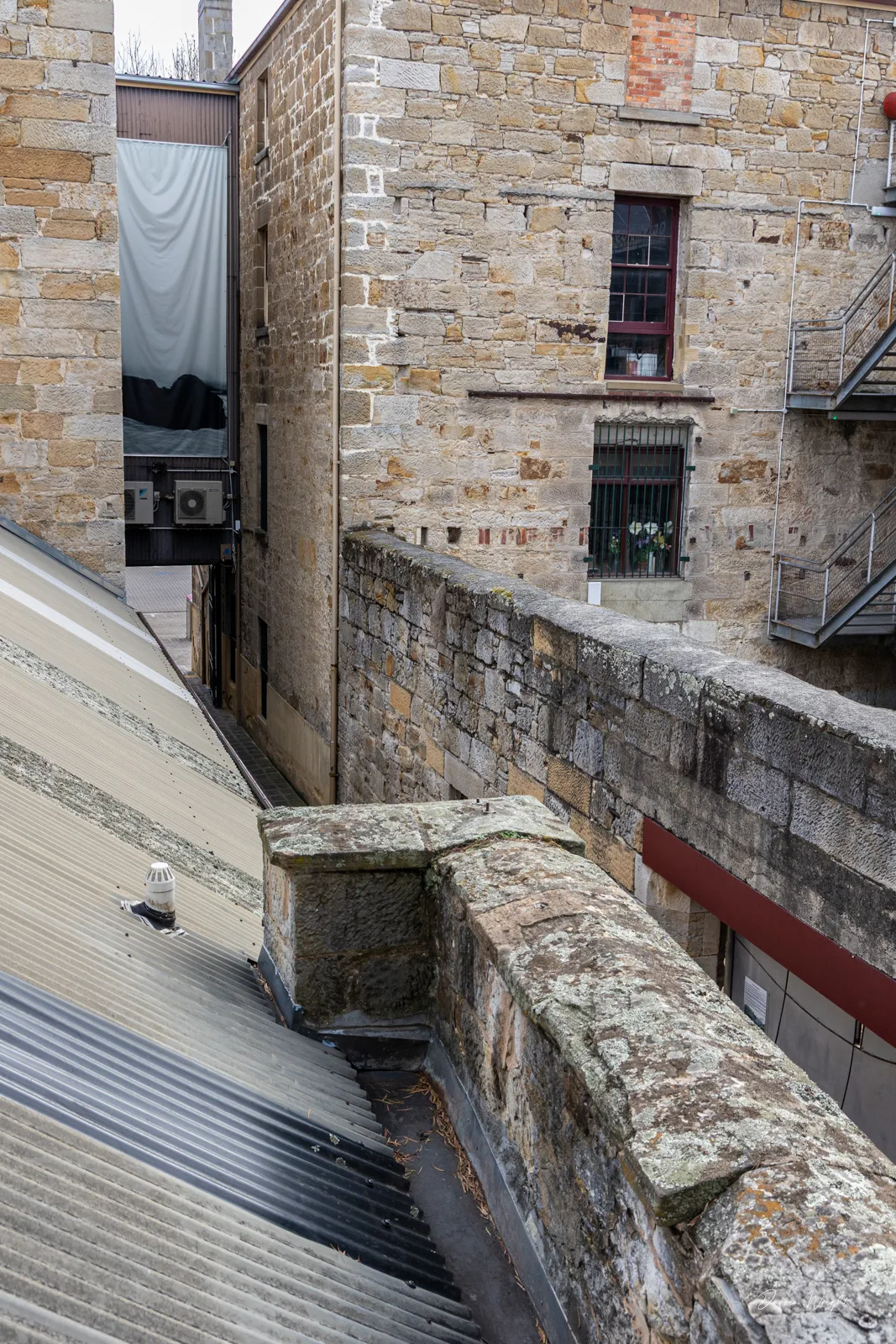 While it’s a transitional space, there’s something grounded and deliberate about it. Clean lines. Solid history. A quiet moment of connection between two very different parts of Hobart.